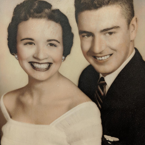 “Well, that was in March. We got engaged in, over Memorial Day and we were married in September 11th 1955. I was married for 63 years and it was a wonderful marriage. He was in the Air-force, a pilot, from Portland, Oregon which was fairly reasonably close to his folks. I got to meet them and uh we stayed in Marin County, he was stationed at Hamilton Field. And we both worked. And uh he was going to get out of the Air-force when his time was up and he was accepted at San Jose State. He was going to go to college and become a teacher and after he thought about it and was mentored on the idea of retiring, you know getting out of the service, he was convinced that he should stay in. That the future would be a permanent future for us. So he decided to stay in the Air-force.”